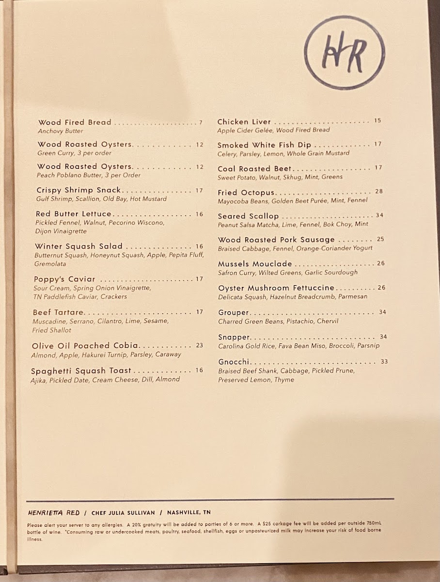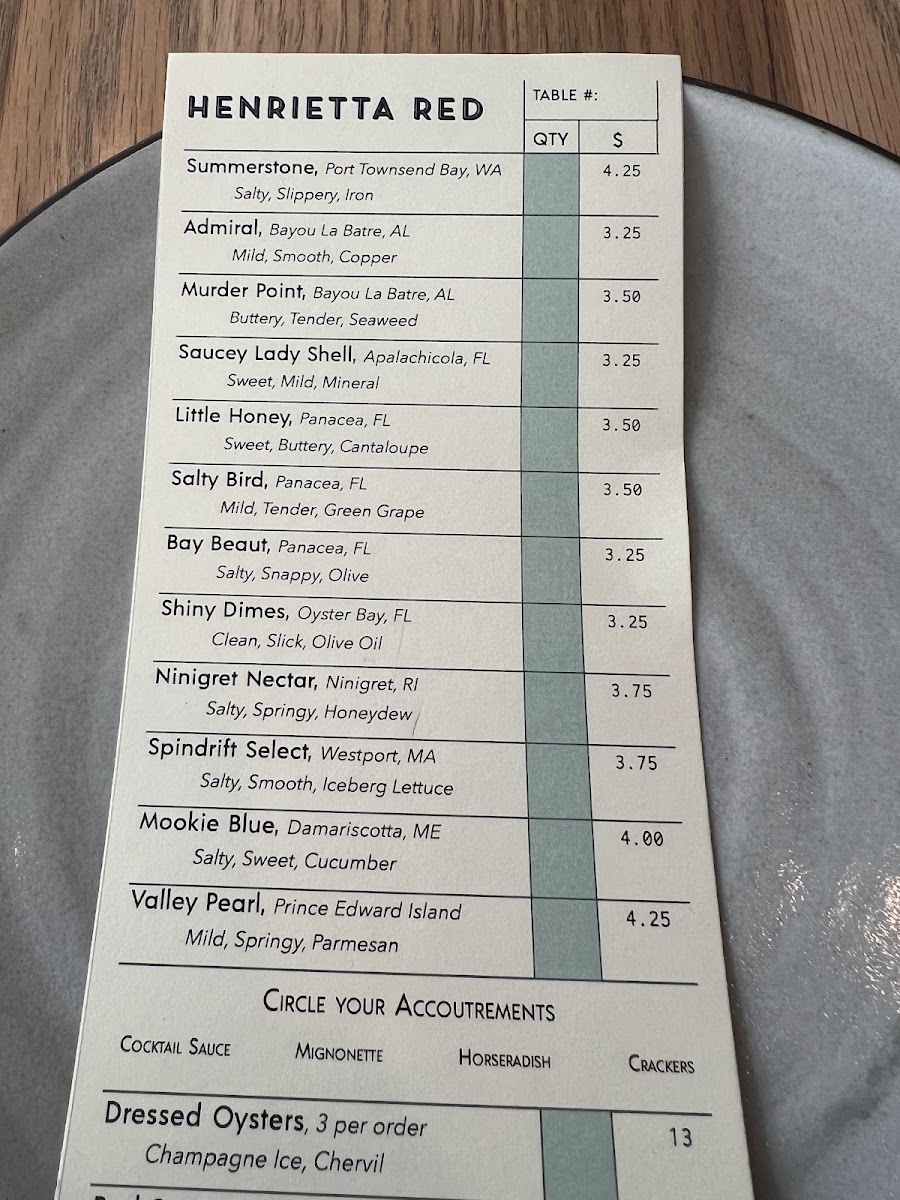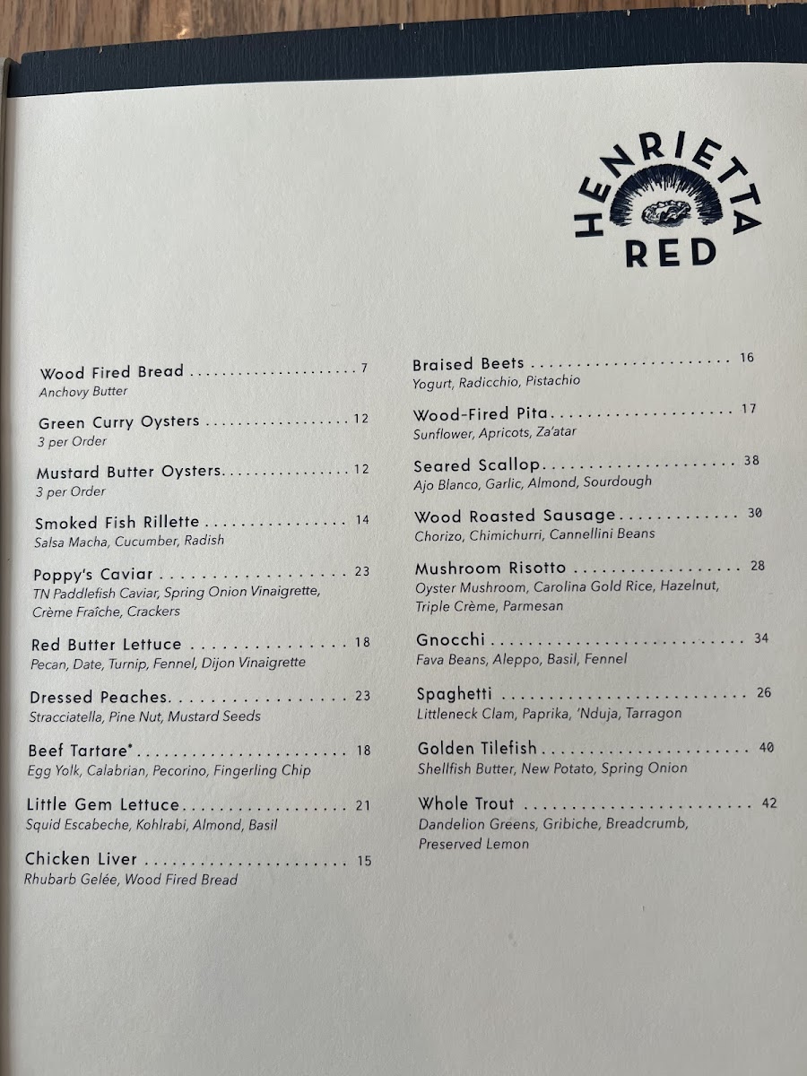 The menu at Henrietta Red offers a thoughtful balance between rustic oyster bar charm and refined New American dining. It features a variety of fresh, seasonal seafood along with carefully crafted small plates and inventive cocktails, creating an inviting space for both casual gatherings and more deliberate evening meals.