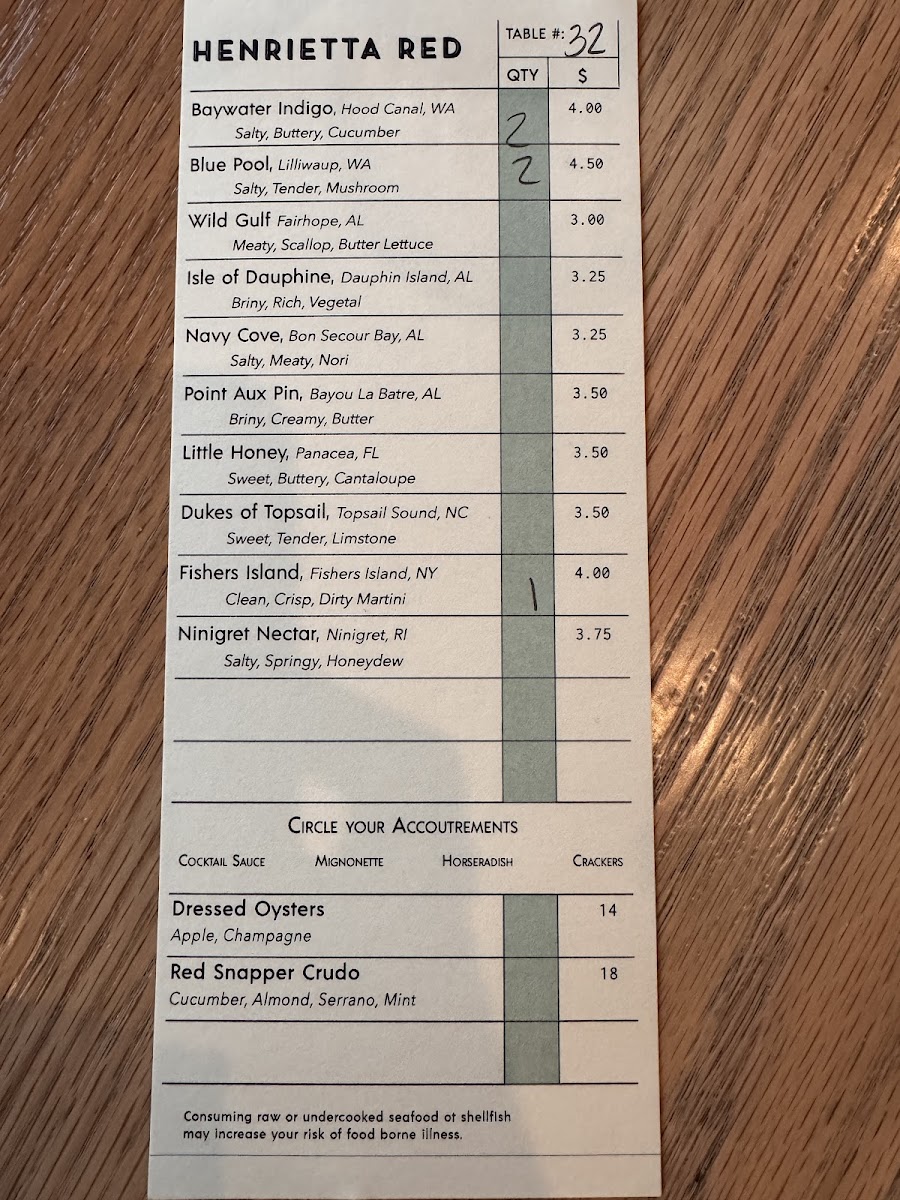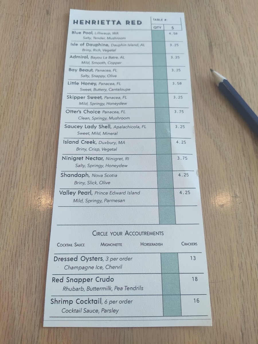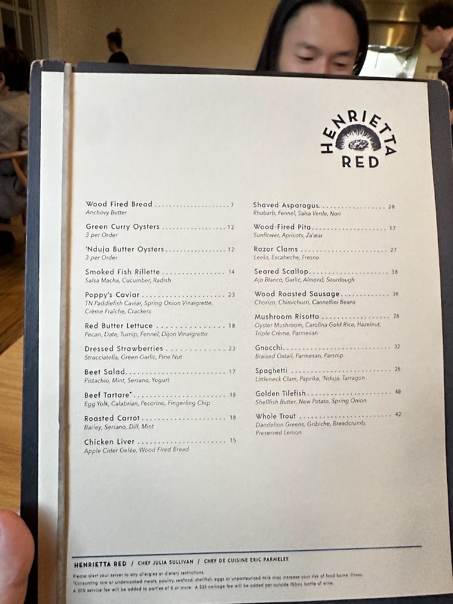 The menu at Henrietta Red offers a thoughtful balance between rustic oyster bar charm and refined New American dining. It features a variety of fresh, seasonal seafood along with carefully crafted small plates and inventive cocktails, creating an inviting space for both casual gatherings and more deliberate evening meals.